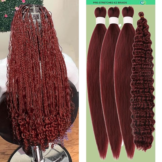 Braiding Hair Extensions Pre stretched Boho Curly Deep Wave Crochet Braids Dark Red | Prestretched | Kids | Ez Braid | Boho Braids | Hypoallergenic | Knotless | Itch Free |