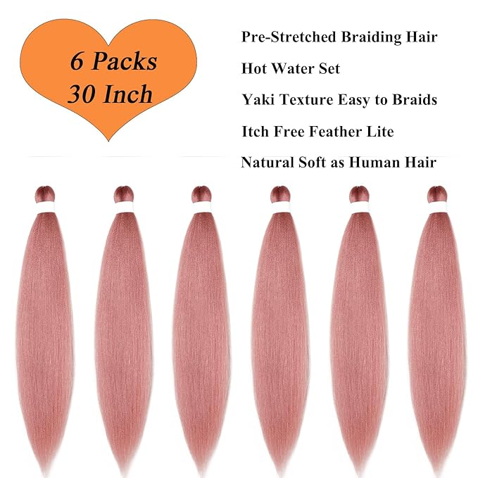 30 Inch Pre Stretched Braiding Hair Rose Gold Pink Braids Hair Extensions for Braiding Ezbraid Hypoallergenic Non Toxic Synthetic Crochet Braids for Black Women 6 Packs