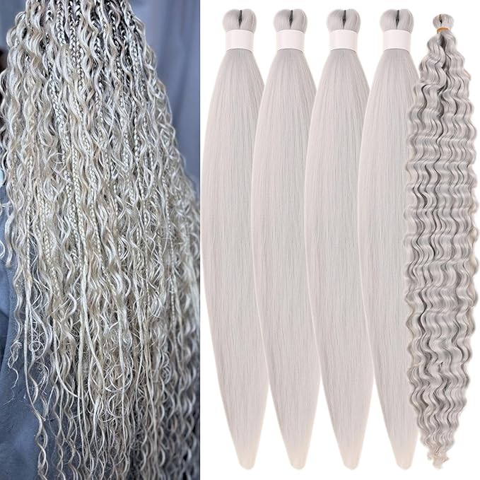 Silver Grey Braiding Hair Pre stretched for Boho Braids Deep Wave Curly Braiding Hair Prestretched for Bohemian Braids Hot Water Setting