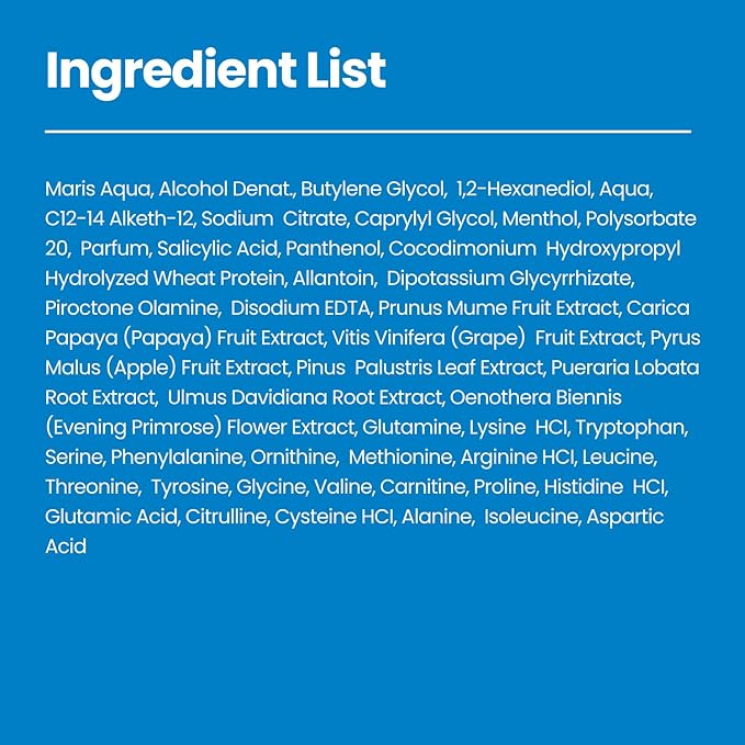 - Active Ingredients : Dex-Panthenol, L-Menthol, Salicylic Acid