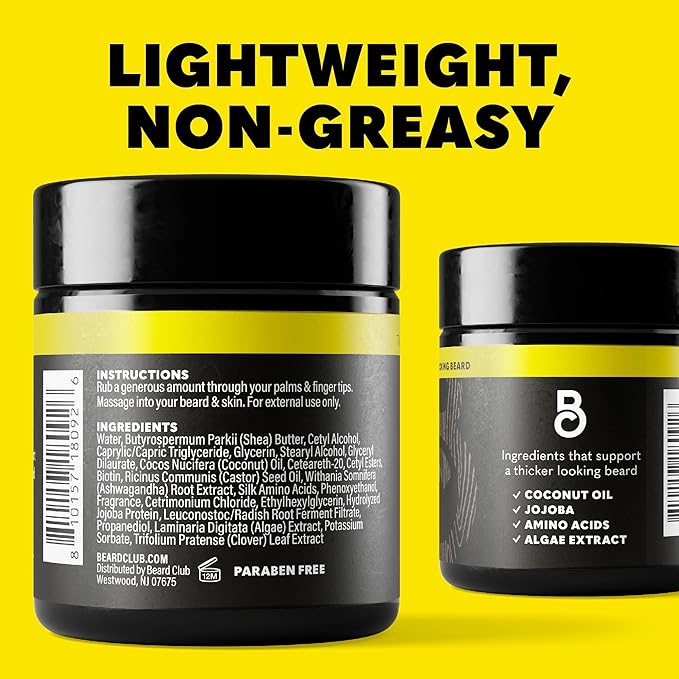 - Support a Fuller, Thicker-Looking Beard – Infused with 2X biotin*, this beard balm deeply nourishes and strengthens facial hair, promoting a fuller-looking beard while softening coarse strands. (*vs. Beard Club Beard & Scruff Cream)