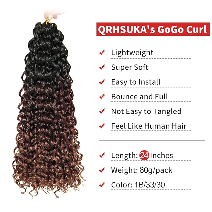 QRHSUKA Curly Crochet Hair GoGo Curl Crochet Hair for Women Deep Wave Braiding Hair Synthetic Bohemian Crochet Braid Water Wave Crochet Hair Extensions (18 inch(Pack of 6), 1B/33/30)