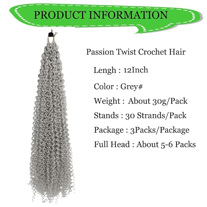 Passion Twist Hair Extensions Gray Curly Crochet Hair 12 Inch Short Curly Braiding Hair 3 Packs Crochet Braids with Curls for Black Women(12",Gray)