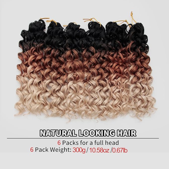 QRHSUKA GoGo Curl Crochet Hair Short Curly Crochet Hair for Women Beach Curl Water Wave Deep Twist Crochet Braids Synthetic Braiding Hair Extensions (12 inch(Pack of 6), 1B/27/613)