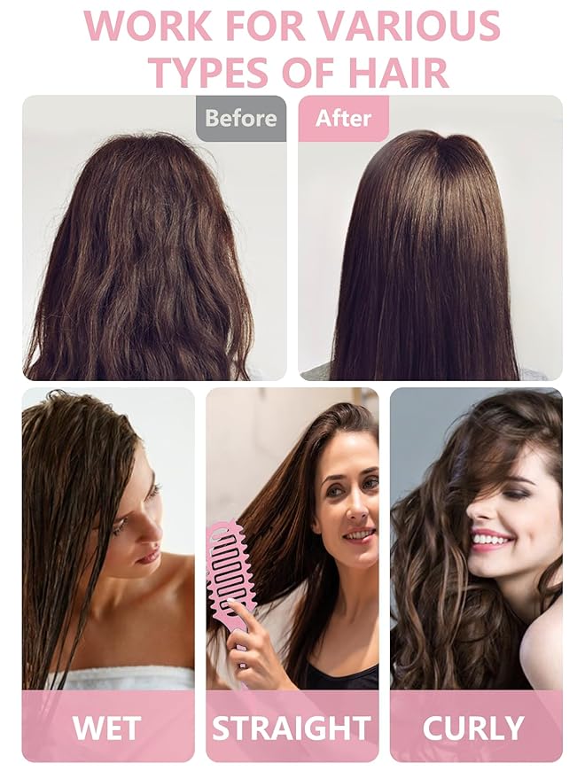 - 【Works on All Hair Types】 Whether your hair is thick, thin, curly, or straight, this versatile brush gently separates strands and enhances natural curl patterns. Leaves hair smooth, shiny, and full of life—your go-to for effortless, damage-free styling.