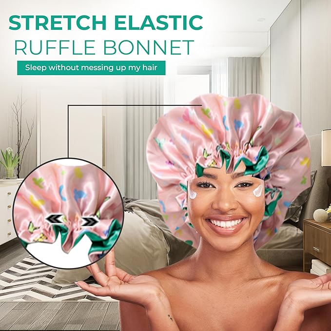 Discover Premium Ruffle Silk Satin Sleeping Bonnets Hair, Moisture Retention, and All-Night Comfort.