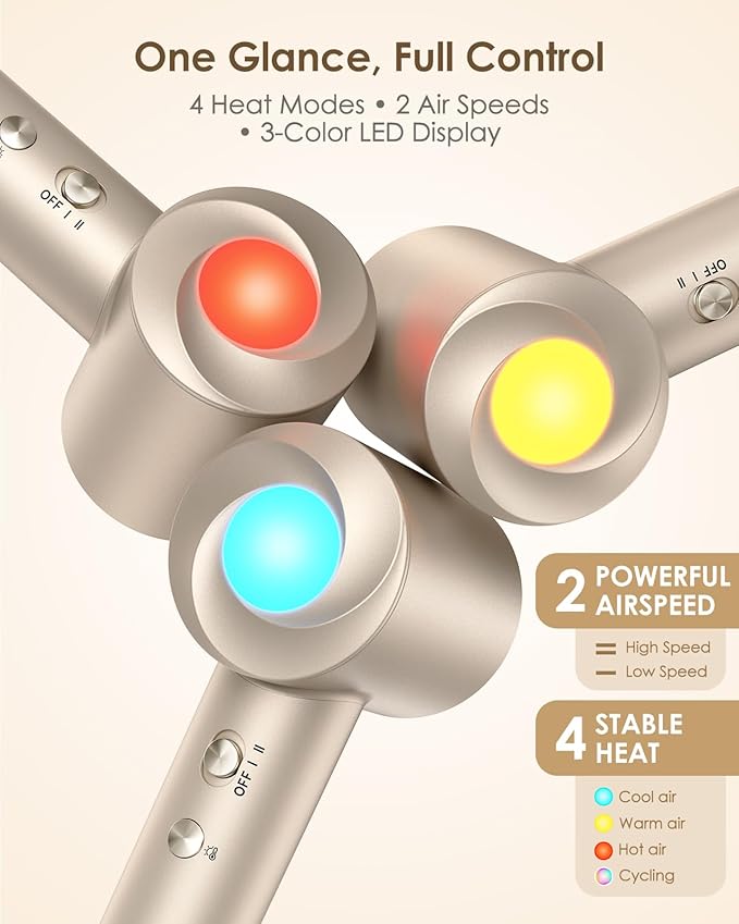 - πππππ ππππ ππππ πππ πππππ ππππ β Choose from 2 speeds and 4 heat settings for personalized styling. The LED ring shows heat levels with intuitive colors: blue (cool), orange (warm), red (hot), white (cycle). Memory function recalls your last setting.