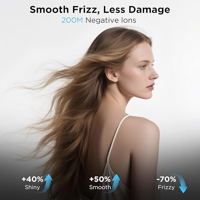 - Negative Ionic Technology & Thermo Control: The blow dryer releases over 200 million negative ions, sealing in moisture and eliminating static for consistently silky, smooth hair. The Thermo-Control microprocessor monitors the air temperature 100 times per second and makes small adjustments at regular intervals to prevent your hair from being damaged by extreme heat. each use will give you a salon-quality