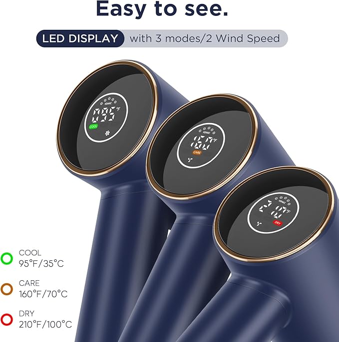 - Smart HD Digital Display: The PARWIN PRO BEAUTY Air-Sonic Hair Dryers for women. Hair Dryer has three hair-blowing modes, including "COOL" mode, "CARE" mode, and "DRY" mode, which correspond to 95℉, 160℉, and 210℉, respectively. Two wind speed settings allow you to customize your drying experience. All six mode settings can be seen clearly at a glance, which makes it easier to find the best choice for your hair