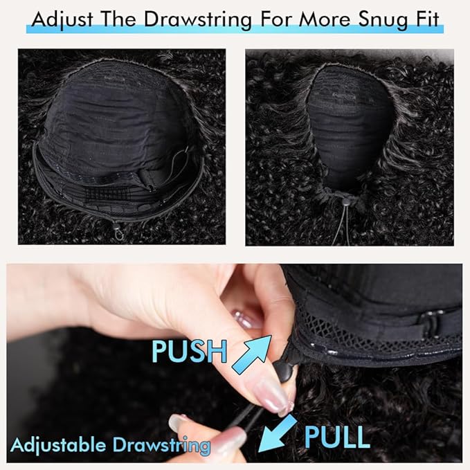 - Glueless Wigs Human Hair Cap: cap size (21-22.5 Inch) with adjustable drawstring and 4 combs, enough secure and comfortable fit, Ultra-thin breathable wig cap, Even in summer, you won’t feel stuffy.