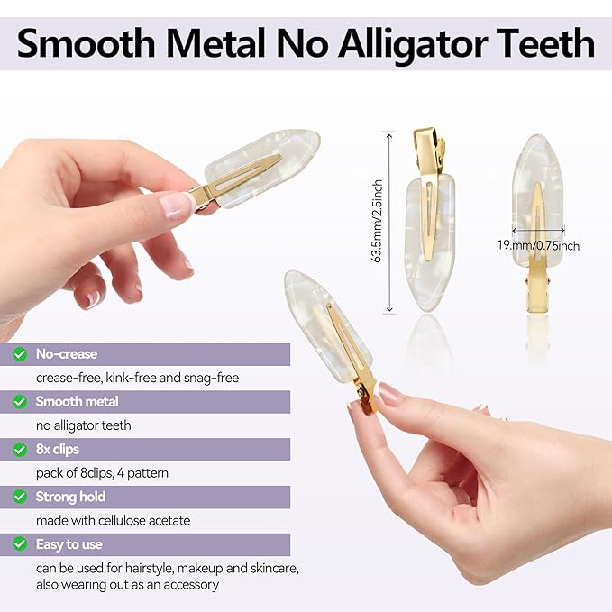 - [No Bend No Crease Design] YIERSO Creaseless hair clips design without teeth, perfect for keeping your hair out of your face whilst applying makeup without creasing your hair even a long time wearing! This means you can confidently style your hair, remove the clip, and enjoy a smooth, flawless look.