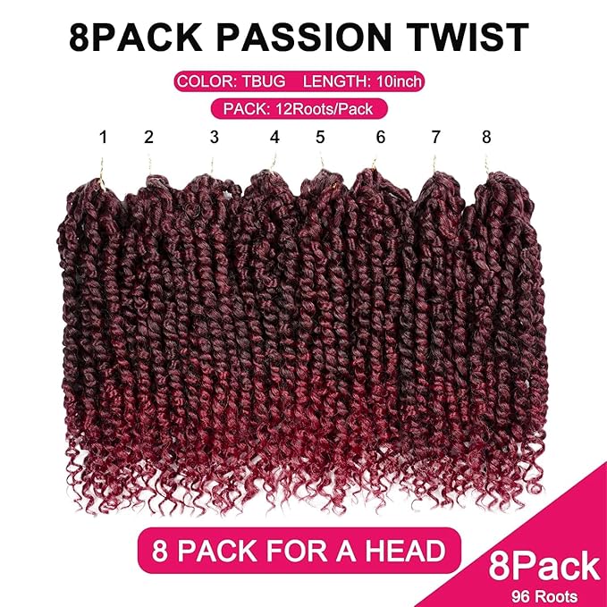 NAYOO Passion Twist Hair - 8 Packs 10 Inch Passion Twist Crochet Hair For Women, Crochet Pretwisted Curly Hair Passion Twists Synthetic Braiding Hair Extensions (10 Inch 8 Packs, TBUGN2)