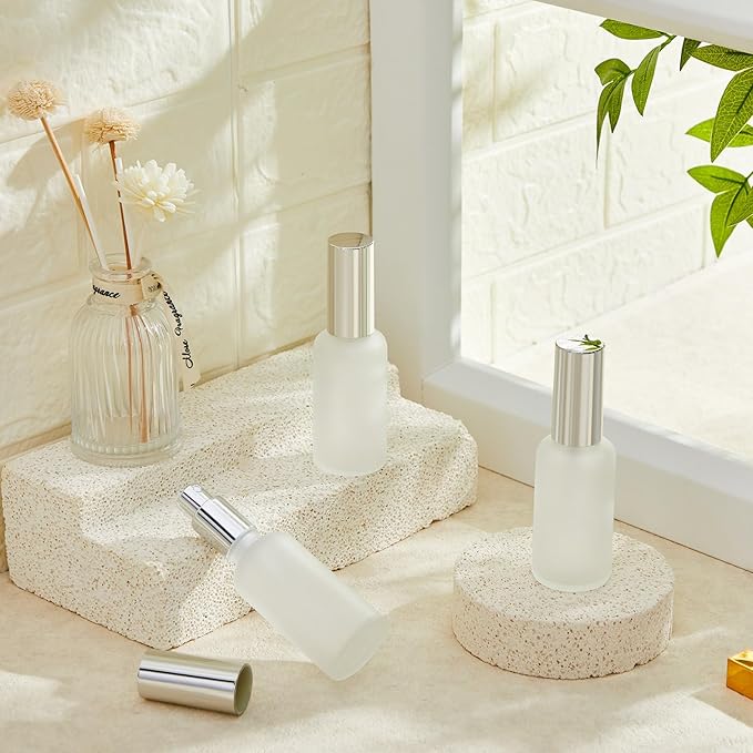 - Elegant Frosted Design: our fine mist spray bottles are designed with frosted glass body and silver cap cover, which is exquisite and elegant, not only a perfume bottle, but also a good ornament on your dressing table, and the frosted design can avoid inner liquid contact with light directly, bringing convenience to your storage