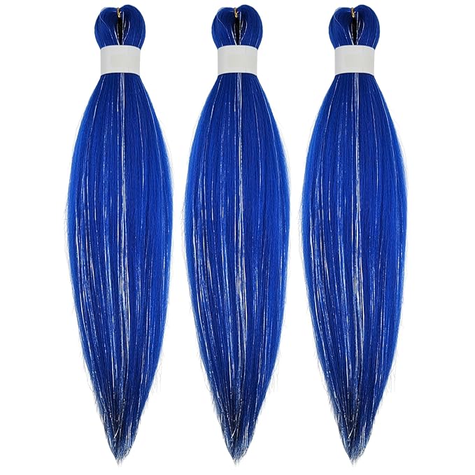Tinsel Kids Braiding Hair Pre stretched Blue Braiding Hair for Glitter Braids Festival Braids Cosplay