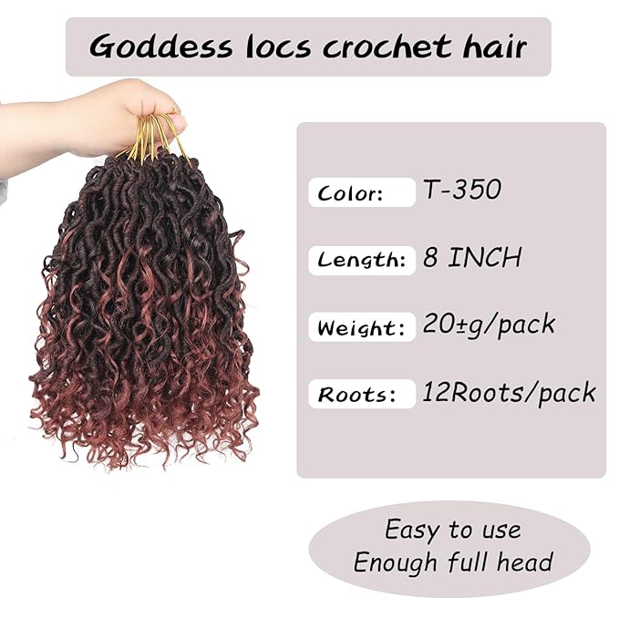 Goddess Locs Crochet Hair,8 Inch 9 Packs Faux Locs Synthetic Crochet Hair for Black Women, Boho Style Pre looped crochet with Curly Ends