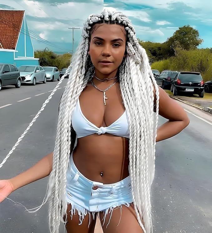 Pre Stretched Braiding Hair With Yaki Texture, Professional Hair Extension for Corochet Braid (White, 24inch(pack of 8))