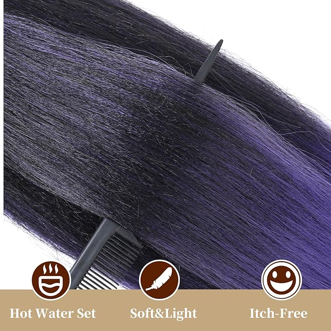 Pre Stretched Braiding Hair Ombre Black To Purple Braiding Hair, 24 Inch 6 Packs Professional Hair Extensions Hot Water Setting Synthetic Fiber Crochet Twist Braids(24Inch,1B/Purple#)