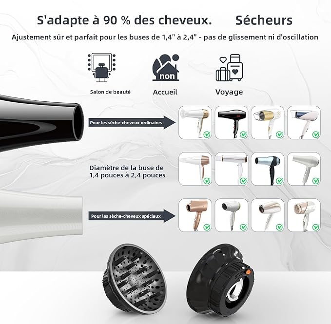 - 【Universal Fit】- Compatible with Most Hair Dryers. Works with Dyson, Shark, Conair, Babyliss & 90% of blow dryers (fits 58mm/2.3" or smaller nozzles). Flexible silicone adapter ensures a secure, non-slip fit—no more frustrating attachment falls!