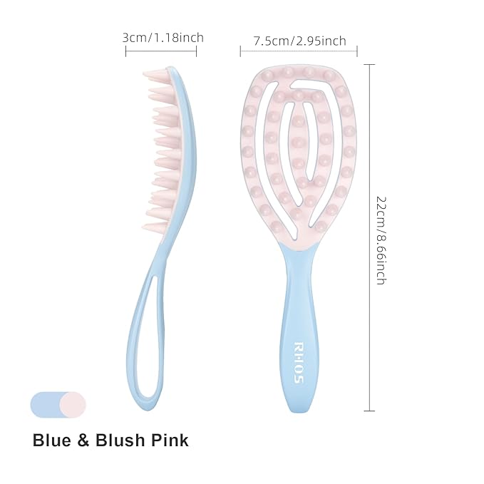 RHOS Scalp Massager, Shampoo Brush with Handle, Curved Vented Hair Scrubber, Scalp Brush for Wet & Dry Hair (Blue)