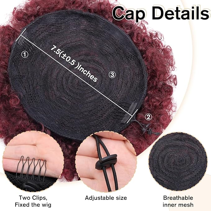 Afro Puff Drawstring Ponytail Synthetic Large Size Afro Kinkys Curly Afro Bun Extension Ombre Burgundy Hairpieces Updo Hair Extensions for Women Girls(1B/BUG#)