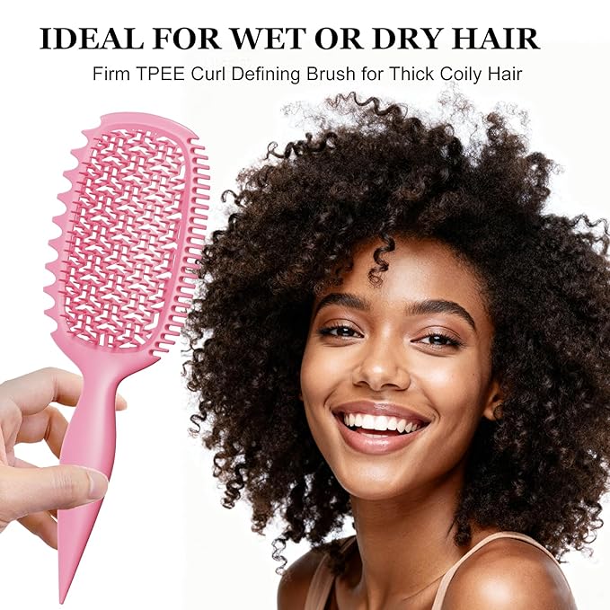 - Designed for Thick, Coarse & Coily Curls: Built with firm TPEE bristles, this curl brush delivers stronger tension to glide through thick, coarse, and 4A–4C curls. Ideal for hair types that require more control to define and smooth curl patterns.