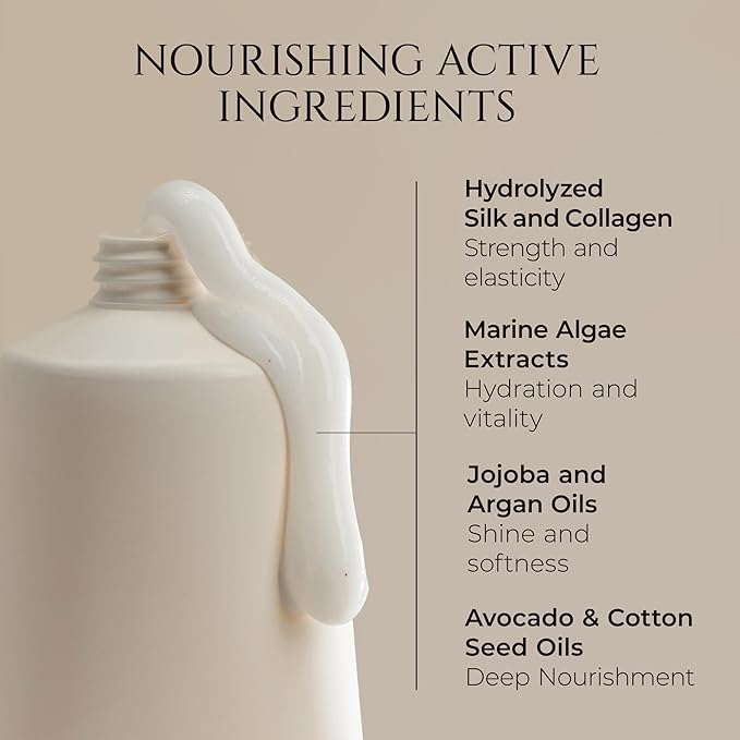 - Deep Hydration & Natural Oils: Enriched with marine algae and a nourishing blend of jojoba, avocado, argan, and cotton seed oils, this formula restores moisture balance, revitalizes dry, brittle hair, and leaves it soft, smooth, and manageable without heaviness.