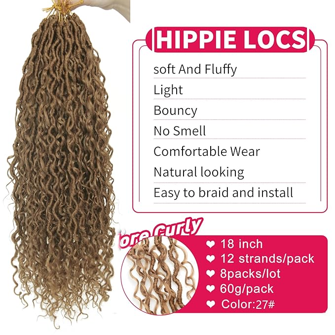 8Packs Goddess Locs Crochet Hair 18Inch Boho Faux Locs,Crochet Loc With Curly Ends River Hippie Bohemian Loc Crochet Hair for Black Women(27#, 18inch(Pack of 8))