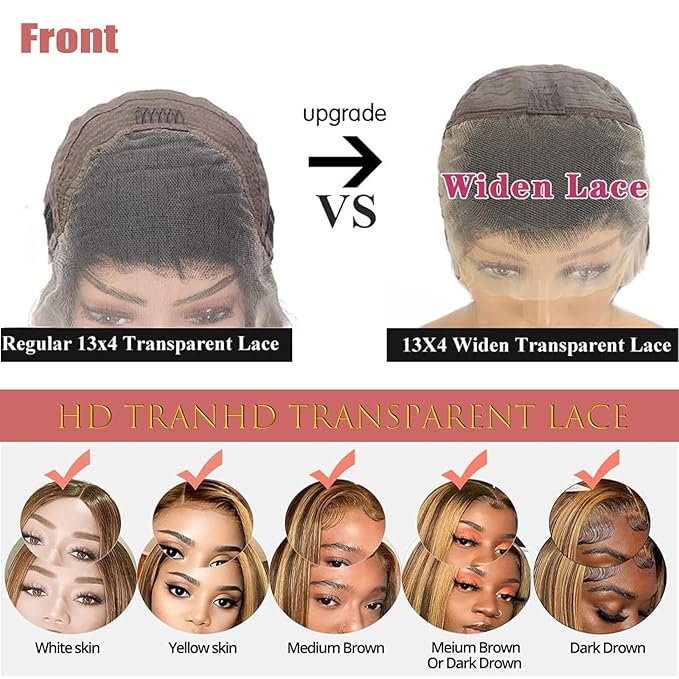 - Highlight Ombre Lace Front Wig Human Hair, showcasing carefully designed highlights and ombre effects, creating a unique visual appeal. Combining Brown and Dark Blonde tones, this Honey Blonde Lace Front Wig Human Hair shade radiates warmth and sunshine, breathing life into your hairstyle.