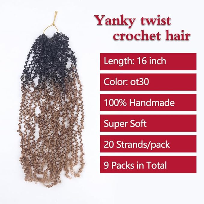 - 2.Quick & Easy Installation: Pre-looped Yanky Twist Crochet features a Pre-twisted Passion curl style for effortless installation. It allows you to conveniently DIY your Yanky Twist Crochet hairstyle at home with ease.