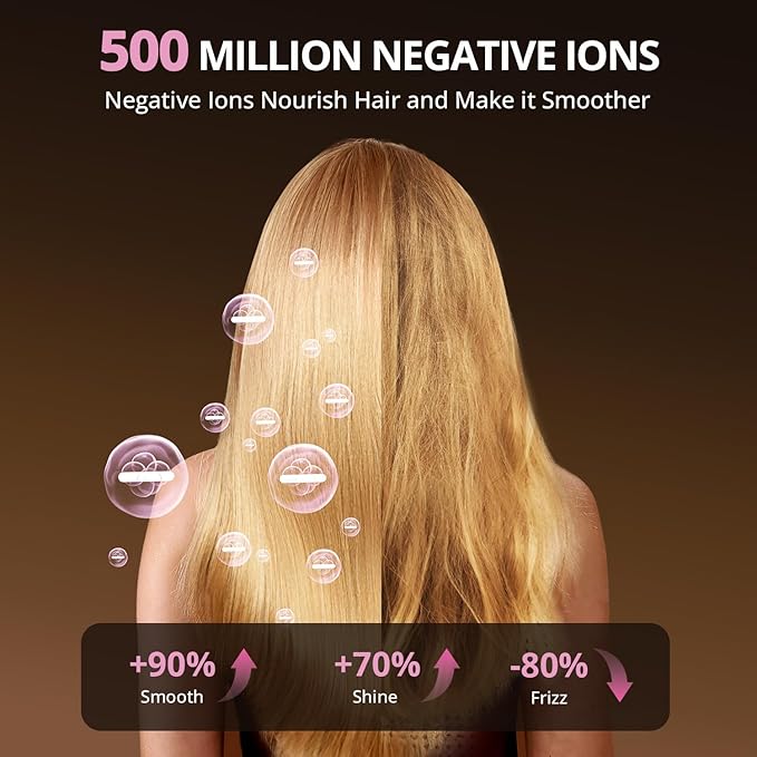 - 500M Ionic: The ionic hair dryer releases 500 million negative ions to neutralize static electricity, lock in moisture and repair the cuticle, reduce frizz, make hair soft, fluffy and shiny, and achieve professional hair care effects.