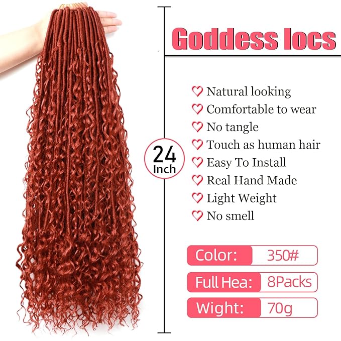Goddess Locs Crochet Hair-24 Inch 8 Packs Boho Faux Locs Crochet Hair for Black Women Pre Looped Soft Locs with Curly Ends (24 Inch(Pack of 8), 350#)