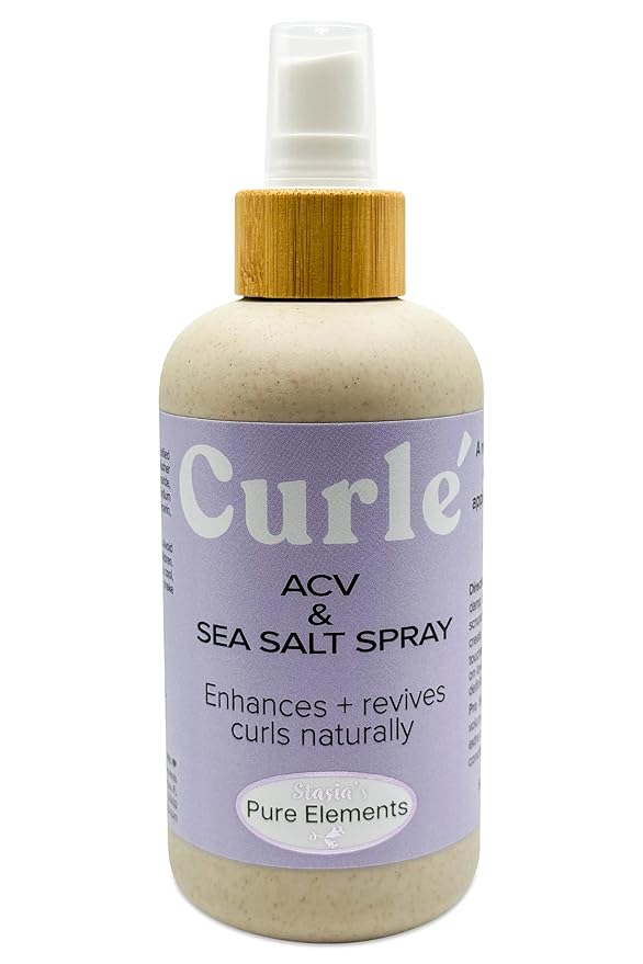 Stasia's Pure Elements Curlé Sea Salt Spray for Curly Hair with Apple Cider Vinegar – Curl Enhancer & Refresher Mist – Defines & Revives Curls Naturally, 8 oz