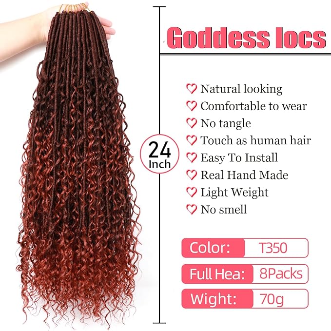 Goddess Locs Crochet Hair-24 Inch 8 Packs Boho Faux Locs Crochet Hair for Black Women Pre Looped Soft Locs with Curly Ends (T350, 24 Inch(Pack of 8))