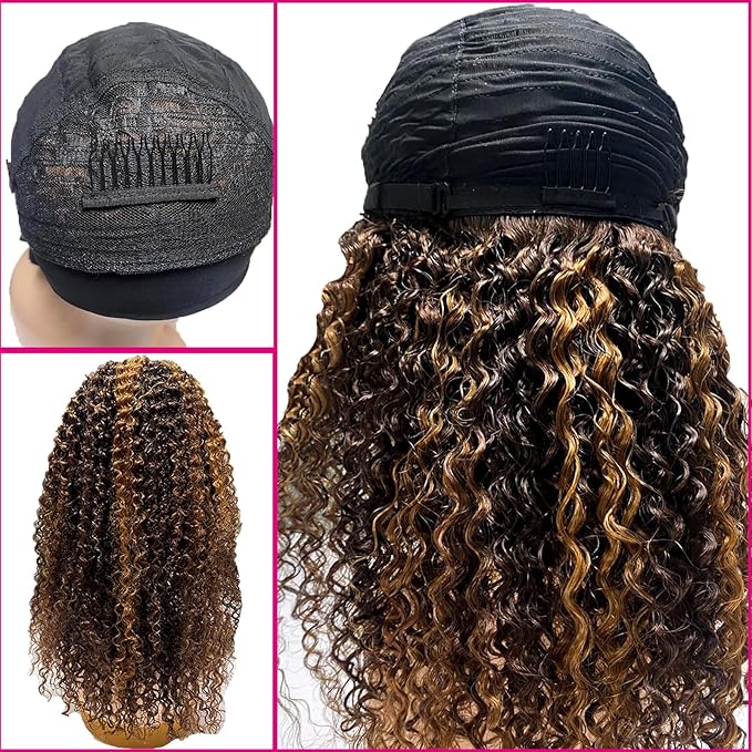 - Highlight Ombre Headband Wig Human Hair Quality -- Kinky Curly Headband Wig for Black Women, Natural Color Brazilian Virgin Human Hair. Soft and Fluffy Hair, 150% Density, No Tangles No Shedding, No Smell, Clean&Bouncy Hair. Can Be Dyed, Curled and Flat Iron and Styled As You Like!