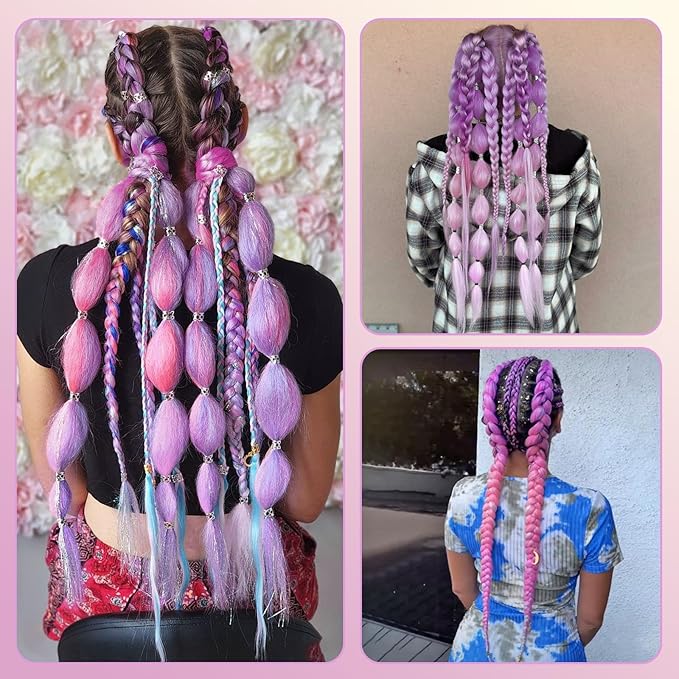 Purple/Pink Pre stretched Braiding Hair 2 Packs Pre feathered Braid Hair Extensions 30 Inches Synthetic Hair Braids