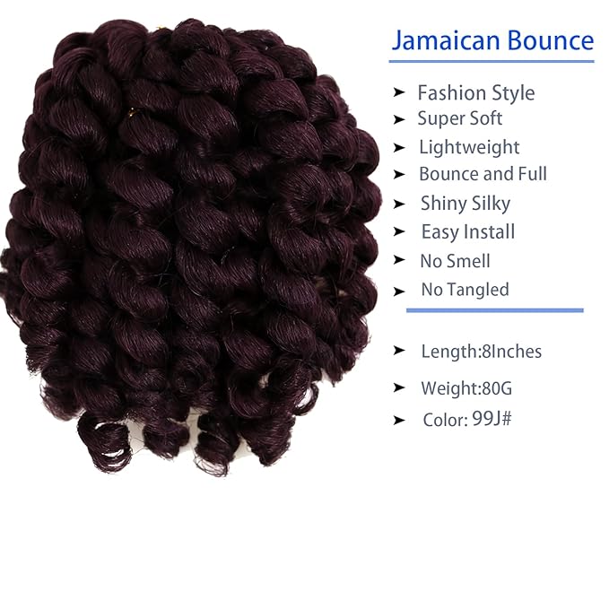 - Our 8 Inch Jamaican Bounce Crochet Hair is Natural Looking, and Touch as Human Hair.