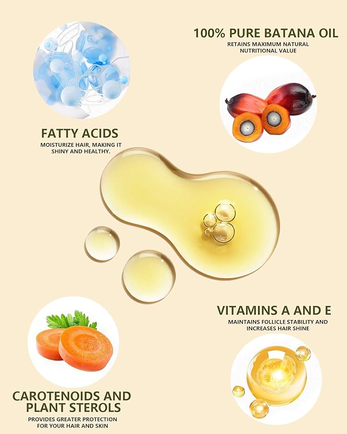 - Revitalize your hair: Enjoy thicker, healthier, and shinier hair. Our carefully formulated Batana hair oil targets issues such as dryness, yellowing, and hair loss, effectively promoting hair growth and precisely filling in sparse areas. With consistent use, it delivers noticeable improvements.