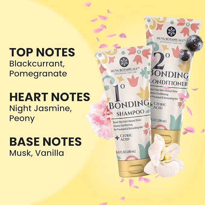 Nuva Botanicals Bond Repair Hair Treatment for Dry Damaged Hair - Intense Conditioning Shampoo and Conditioner Set Hair Bonding Treatment with Salicylic Acid, Vitamin B5, Citric Acid(6.8 fl oz each)