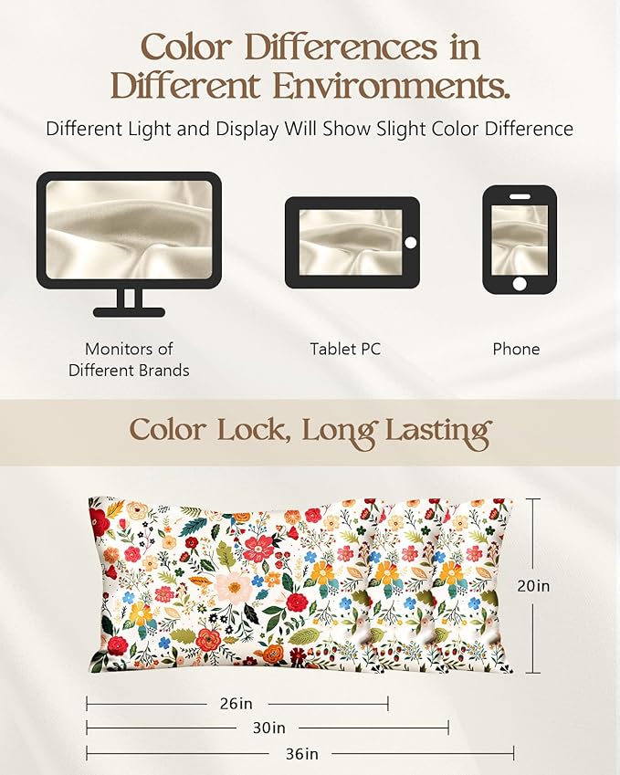 Silk Pillowcase 2 Pack - Pillow Cases 20" x 30" Queen Size Set of 2 for Hair and Skin Smooth Soft Breathable with Hidden Zipper Cooling Pillow Covers for Sleeping, Beige Floral