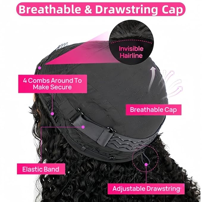 - Human Hair Half Wig Cap:Glueless Wigs Human Hair Use Less Time To Wear And Go. Seamless Flip Over Half Wigs Human Hair Beginner Friendly. No Lace Kinky Curly Human Hair Wig,More Comfortable Breathable and Sweatproof. Medium Cap (21-22.5Inch) with 4 Extend Combs 2 Adjustable Straps 1 Silicone Anti-Slip Elastic Bandage And 1 Drawstring. Easy to Fix and Adjust.