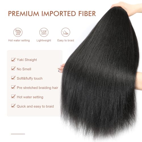 - 1.Hair Material: Our Pre-Stretched Braiding Hair Is Made Of High Quality Low Temperature, Flame-Retardant Yaki Texture Synthetic Fiber. Natural Looking, Super Soft & Skin-Friendly.