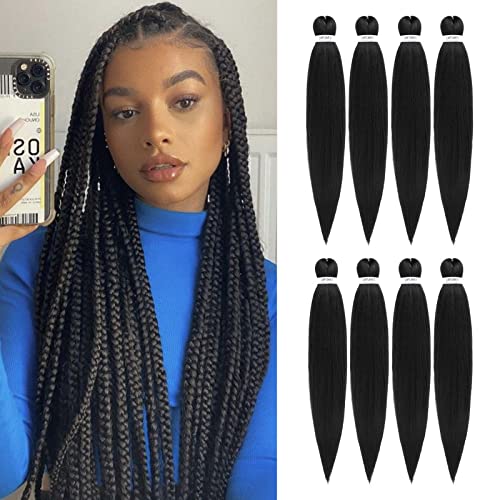 Pre-stretched Braiding Hair - 26 Inch 8 Packs Natural Black Super Long Braiding Hair For Twist or Box Braids, Yaki Texture Hot Water Setting Synthetic Braiding Hair Extensions (26 Inch, 1B-8P)