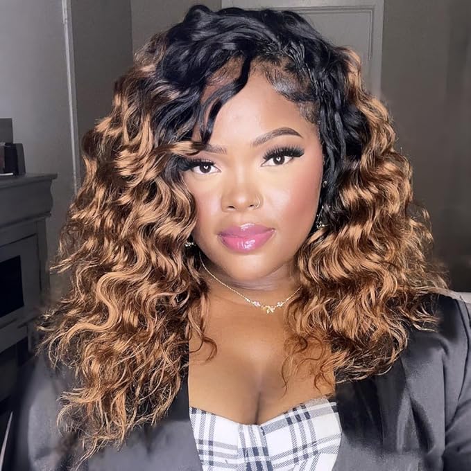 ToyoTress Ocean Wave Feather Crochet Human Hair - 10 Inch 50G Invisible Knotless Water Deep Wave Crochet Human Hair For Black Women Ombre Brown Braiding Hair (10 Inch, OT30-50G)