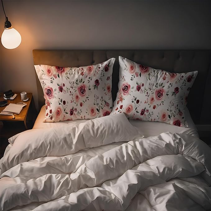 Satin Pillowcase Rose Flowers and Leaves Similar to Silk Pillow Cases for Hair and Skin, 1 Pack Soft Smooth Breathable Cool Pillow Cases, Queen Size with Hidden Zipper 20" x 30"