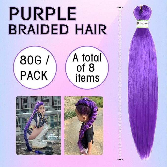 Pre Stretched Braiding Hair With Yaki Texture, Professional Hair Extension for Corochet Braid (Rumi Purple, 24inch(pack of 8))