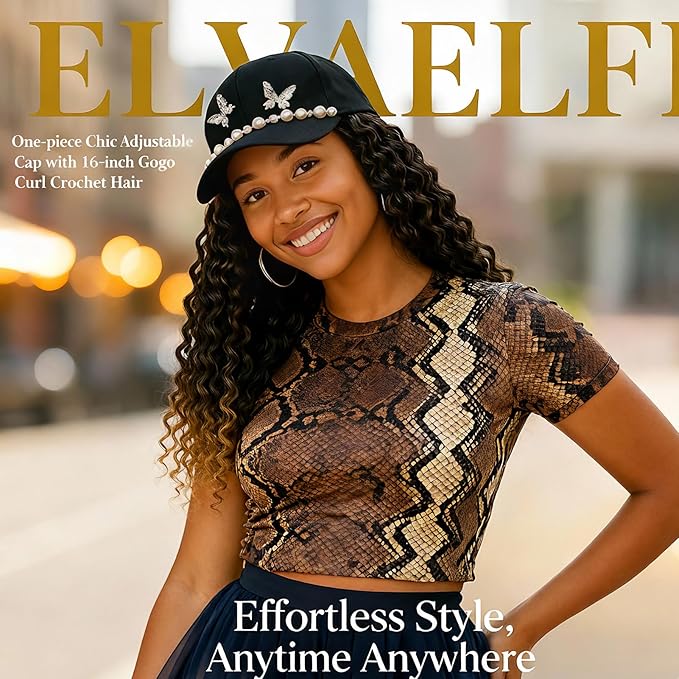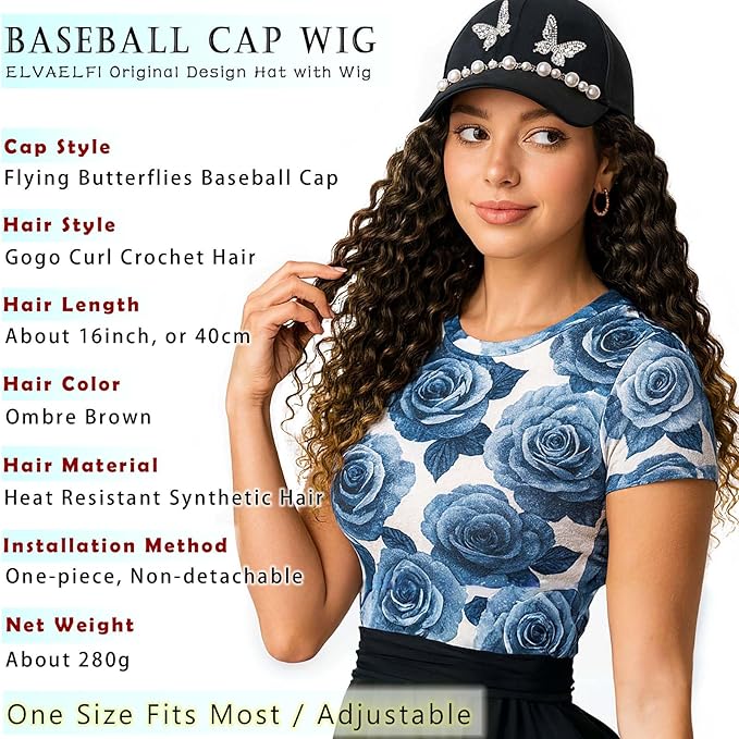 - Instant Effortless Style with 16-Inch Gogo Curl Crochet Hair Hat Wig: Tired of bad hair days or spending hours on styling? Our ELVAELFI one-piece baseball cap wig delivers effortless style in seconds—just put it on, and you’ll have a natural 16-inch medium-length beach curl crochet hair ombre wig that flatters any look! This ombre curly brown wig is designed for women who want to save time without compromising fashion, making it perfect for daily wear, dates, or parties.