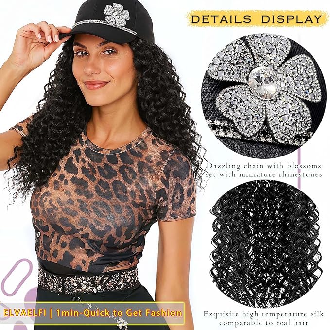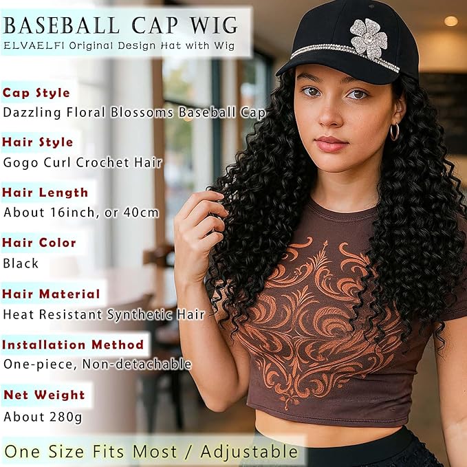 - Instant Effortless Style with 16-Inch Gogo Curl Crochet Hair Hat Wig: Tired of bad hair days or spending hours on styling? Our ELVAELFI one-piece baseball cap wig delivers effortless style in seconds—just put it on, and you’ll have a natural 16-inch medium-length beach curl crochet hair that flatters any look! This black gogo hair extensions is designed for women who want to save time without compromising fashion, making it perfect for daily wear, dates, or parties.