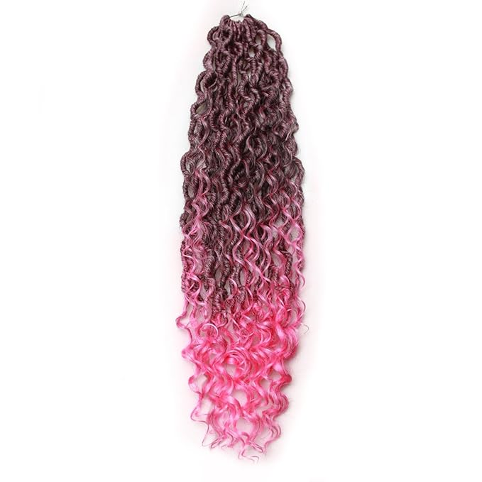 8Packs Goddess Locs Crochet Hair 22Inch Crochet Locs,Boho Faux Loc With Curly Ends River Hippie Bohemian Loc Crochet Hair for Black Women(1B/Pink, 22inch(Pack of 8))