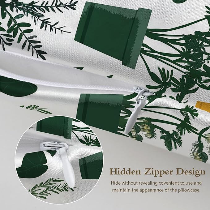 Indoor Plant 1 Pack Satin Pillowcase for Hair and Skin Green Houseplant Imitation Silk Pillowcase with Hidden Zipper Soft Breathable Pillow Cover Standard Size for Bedroom Sofa 20”x26”