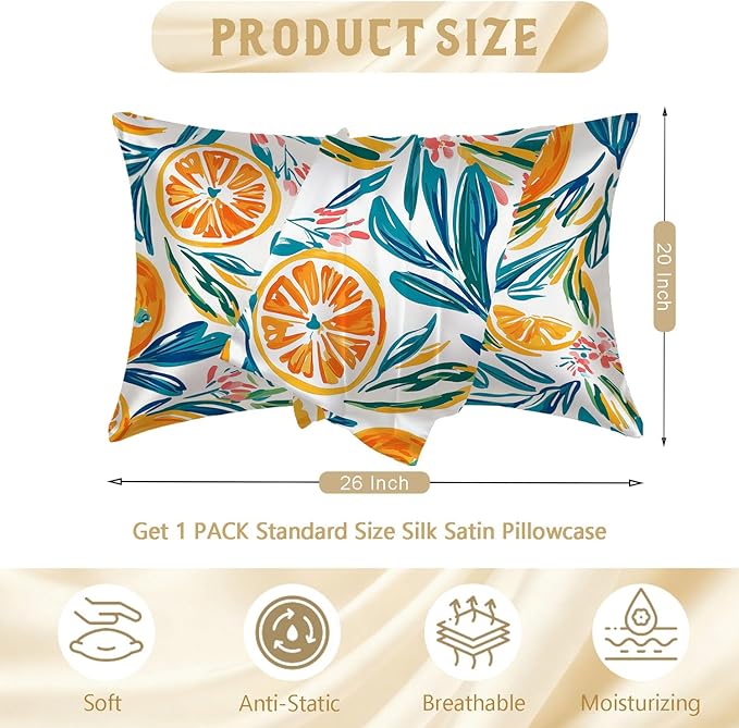 - Size: The abstract orange and leaves standard imitation silk pillowcase is 20x26 inches. We have a variety of colors for you to choose from. Beautiful, exquisite, and lovely silk pillowcases are suitable for all pillow materials, which can protect the pillow from dust and stains